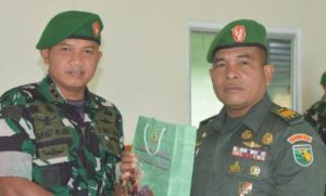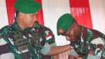 Komandan Kodim 1710/Mimika, Letkol Inf M. Slamet Wijaya menyerahkan cenderamata kepada Kapten Inf Gertaim Pakpahan yang akan bertugas di satuan baru. Foto: Pendim 1710/Mimika.