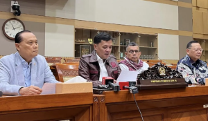 Ketua Komisi III DPR RI Habiburokhman (kedua dari kiri) membacakan kesimpulan rapat di kompleks parlemen, Jakarta, Senin (23/2/2026). Foto: Ant.