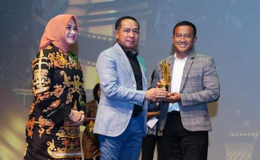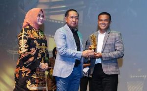 Panglima TNI Jenderal TNI Agus Subiyanto didampingi Ny. Evi Agus Subiyanto, menyerahkan piala kemenangan pada Awarding Night Military Short Movie Festival 2024. Foto: Puspen TNI.